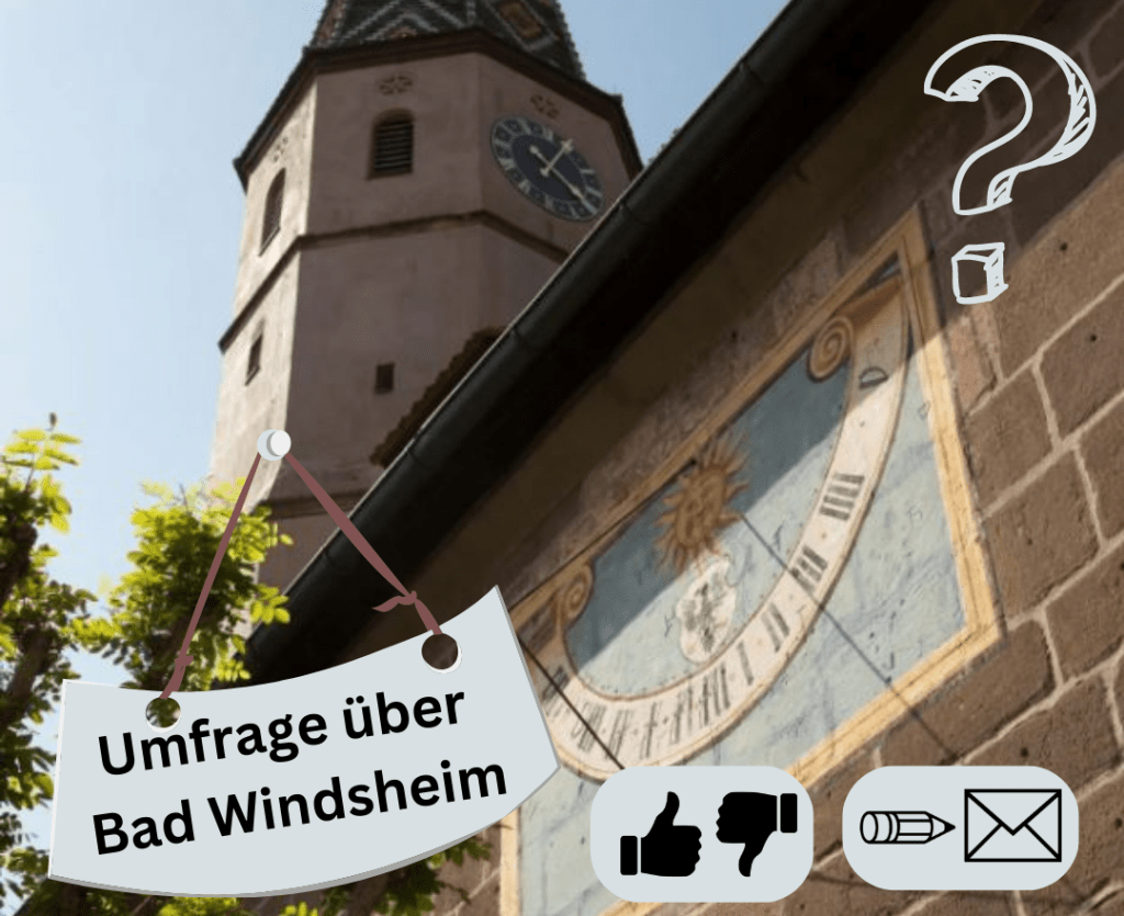 Im Rahmen einer Masterarbeit an der Technischen Universität München werden mit Blick auf die Zukunft das Umfeld Bad Windsheims und aktuelle Einflüsse vor Ort erforscht. Die Masterandin wendet sich hierfür mithilfe eines etwa 10-minütigen Online-Fragebogens an alle volljährigen Bürgerinnen und Bürger der Stadt Bad Windsheim.